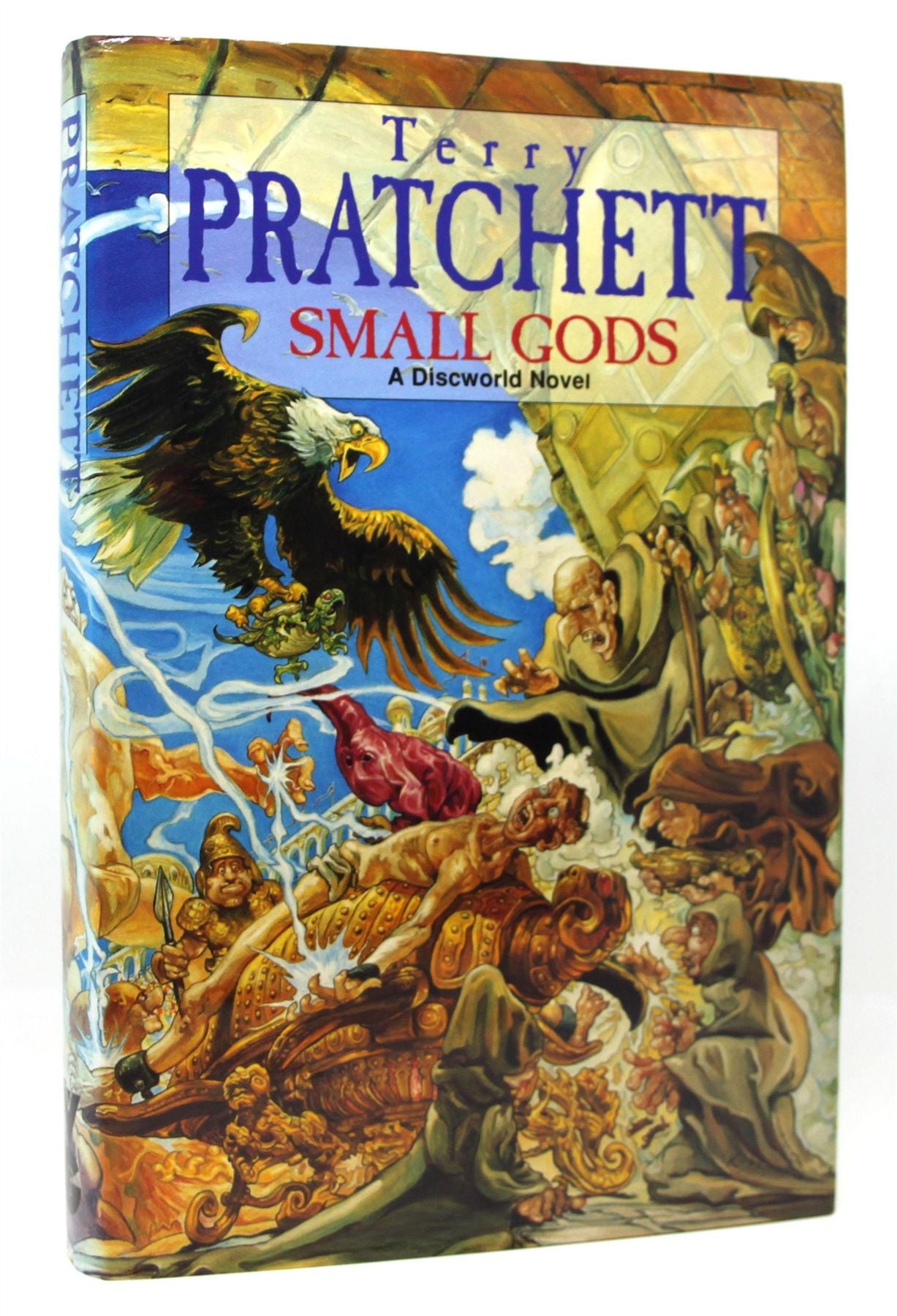 In the beginning was the Word. And the Word was: 'Hey, you!' This is the Discworld, after all, and religion is a controversial business. Everyone has their own opinion, and indeed their own gods, of every shape and size, and all elbowing for space at the top. In such a competitive environment, shape and size can be pretty crucial to make one's presence felt. So it's certainly not helpful to be reduced to appearing in the form of a tortoise, a manifestation far below god-like status in anyone's book.
